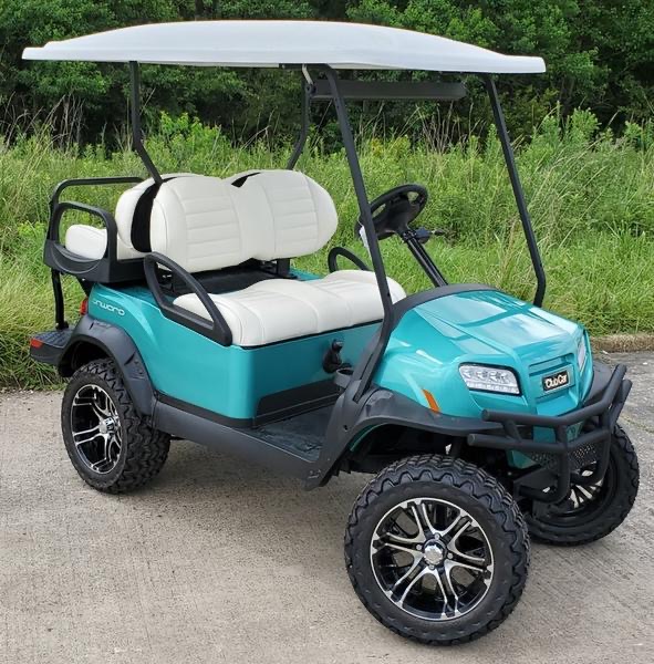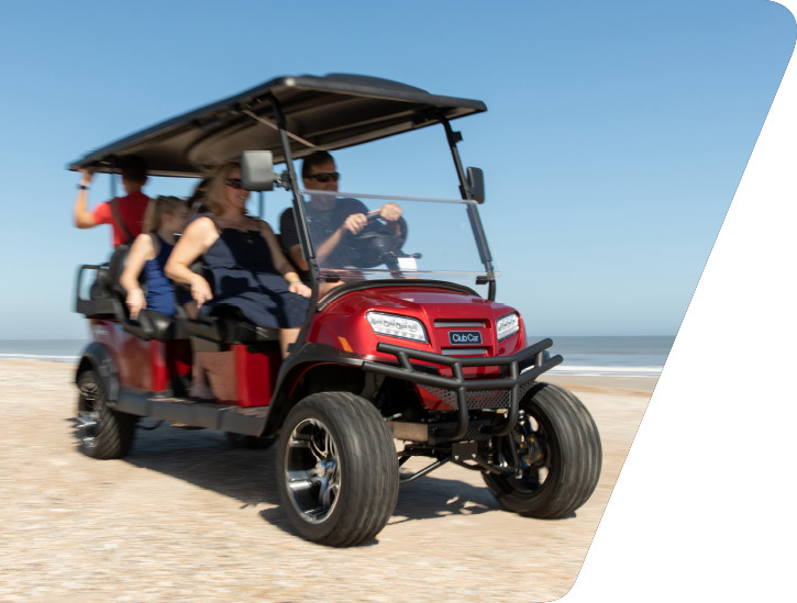 Our NEW GOLF CARTS have lift kits with custom wheels and tires. All of our carts are gas-powered – electric carts only last about 4 hours on charge and it takes 8 hours to recharge. Ours are gas and go! Most of our golf cart renters report their golf carts go almost all week on one tank of gas!